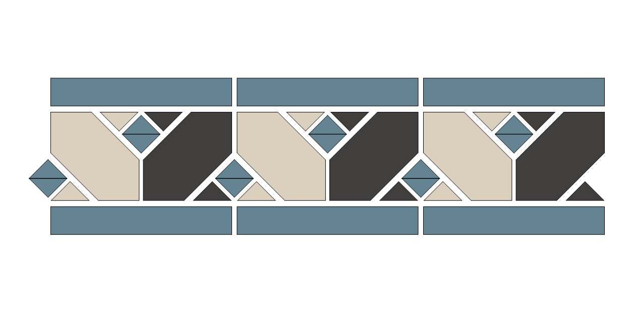 Бренд TopCer Коллекция York Цвет бежевый, синий, чёрный Страна Португалия Поверхность матовая Помещение для ванной, для гостиной, для дачи, для дома, для кухни Назначение на пол, на стену Форма прямоугольная Рисунок геометрия, метлахский Размер 12.2x42.2 Толщина, мм 8 -